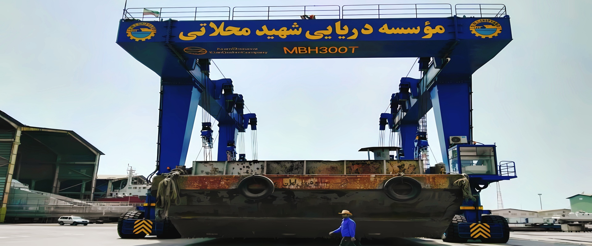 游艇搬運起重機具有自動力、多點提升、全液壓傳動,上部結(jié)構(gòu)為雙門架“U”型連接框架,以便于在碼頭或廠區(qū)滿足不同船型(如帆船)的提升作業(yè)需求。